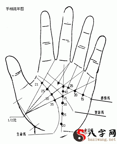 掌纹流年(liunian)的观点(如图所示)