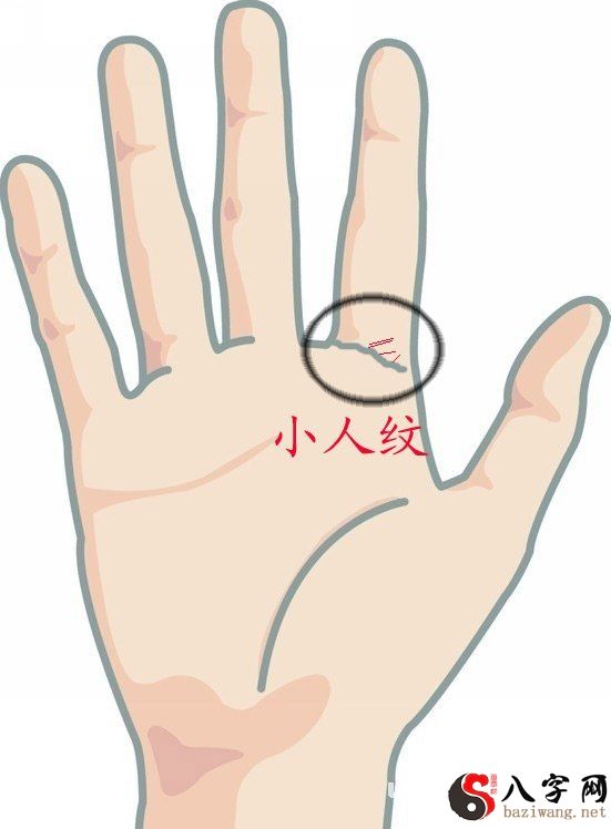 在左手无名指(wumingzhi)和小拇指xiaomuzhi指缝间下斜xiaxie斜的两花纹,表明这人会有言究(youyanjiu)写作的才可以。能够nenggou从业研究或创作美术绘画,一定有造就。